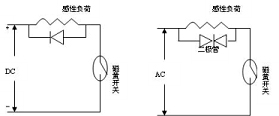 當磁黃開關使用在有馬達、繼電器、電磁閥等電感性負荷的電路中,當磁黃開路瞬間,接點將承受一高感應電壓。這樣損壞或縮短磁黃開關的使用受命.建議增加保護電路如下: