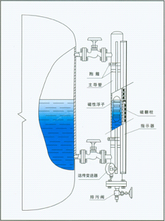 因運輸或其他振動,可能引起磁記憶開關接點狀態錯亂,在接線前,用磁鋼在連通管外上下拉動浮子,模擬動作一次,使磁記憶開關接點狀態恢復正常。然后再接線、投入使用。